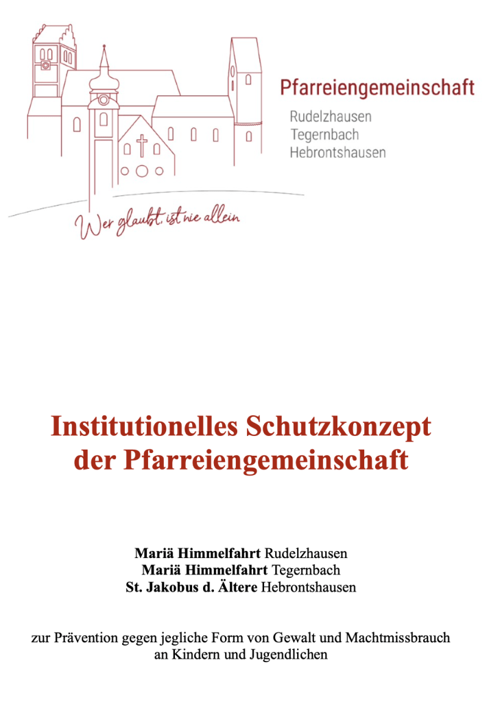 Die Pfarreiengemeinschaft Mariä Himmelfahrt Rudelzhausen, Mariä Himmelfahrt Tegernbach und St. Jakobus d. Ä. Hebrontshausen hat ihr Institutionelles Schutzkonzept zur Prävention gegen jegliche Form von Gewalt und Machtmissbrauch an Kindern und Jugendlichen verabschiedet. Damit setzen wir ein klares Zeichen für einen achtsamen und respektvollen Umgang miteinander. Unser Ziel ist es, dass alle Kinder und Jugendlichen in unseren Pfarreien einen sicheren Raum finden, in dem sie sich angenommen, geschützt und wertgeschätzt fühlen. Das Schutzkonzept legt verbindliche Verhaltensregeln, Zuständigkeiten und Beschwerdewege fest und schafft damit Transparenz und Sicherheit für alle, die in der Kinder- und Jugendarbeit tätig sind. Es wurde in einem intensiven gemeinsamen Prozess erarbeitet – mit Beteiligung der Pfarrgemeinderäte, Kirchenverwaltungen, Seelsorger sowie vieler engagierter Ehrenamtlicher. Allen, die an der Erstellung mitgewirkt haben, gilt unser herzlicher Dank – besonders der Steuerungsgruppe „Schutzkonzept“.