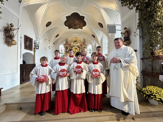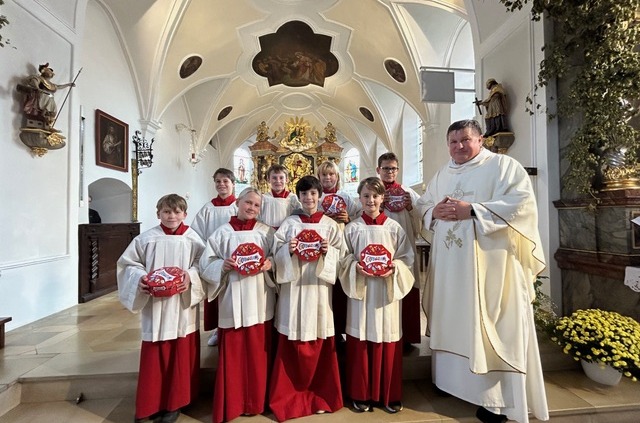 Beim diesjährigen Ministrantensonntag, der zugleich mit dem Kirchweihfest in der Pfarrkirche Rudelzhausen gefeiert wurde, begrüßte Pater Peter im Festgottesdienst acht neue Ministrantinnen und Ministranten und dankte den ausscheidenden Ministranten für ihren langjährigen Dienst. Er betonte, wie wichtig ihr Beitrag für die Lebendigkeit des Glaubens in der Gemeinde ist und wie sehr gemeinsames Tun und Begegnung auch außerhalb des Altardienstes die Gemeinschaft stärken.
